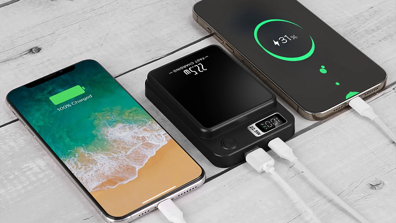 Whether you're charging your iPhone, Android, iPad, AirPods, smartwatch, or even your Bluetooth headphones, this power bank handles it all. It supports both wireless and wired charging, so you can power up a MagSafe iPhone while topping off a second device through USB-C or USB A
