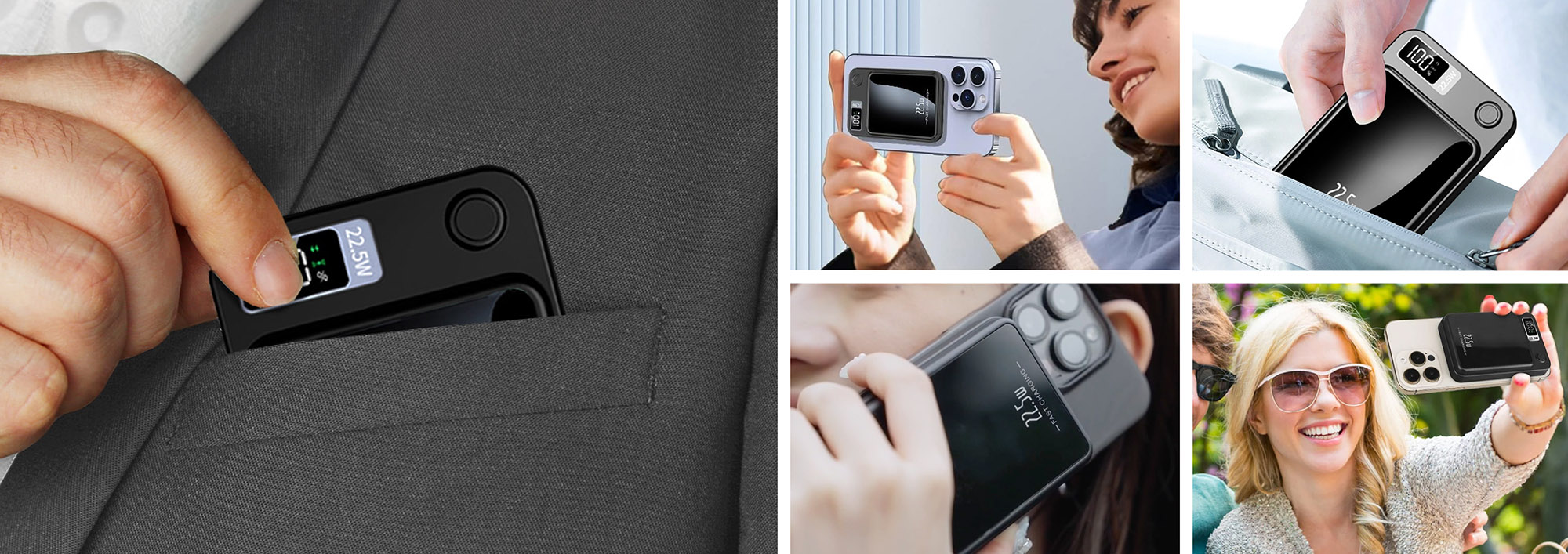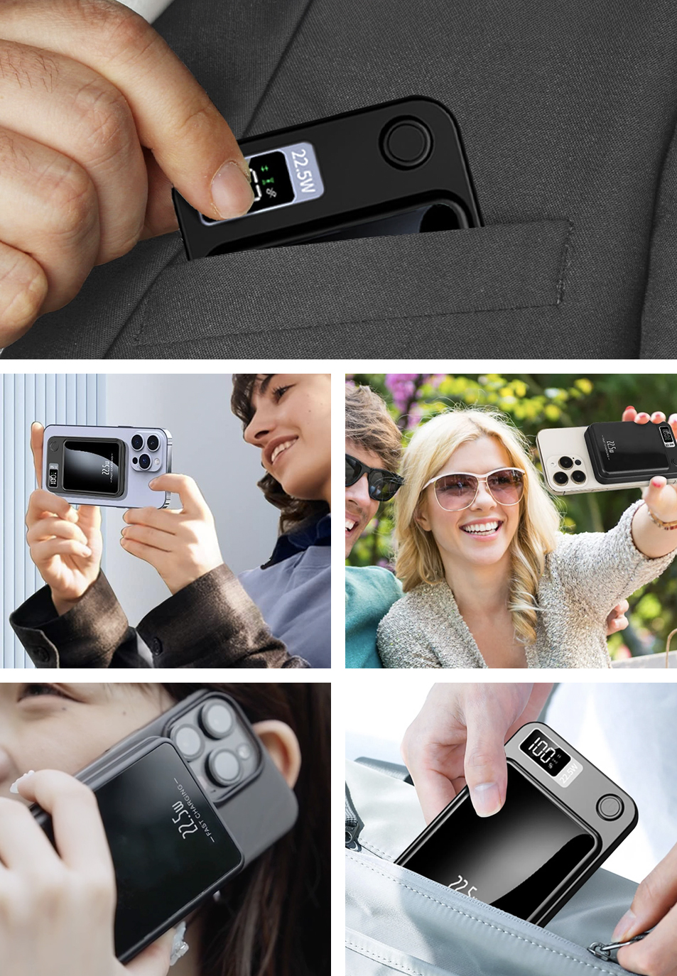 Equipped with 22.5W fast charging, this power bank delivers up to 4x times the speed of standard chargers. Get your phone back to 75% percent in under= 30 minutes. It keeps you powered up and moving without ever stressing about your battery.